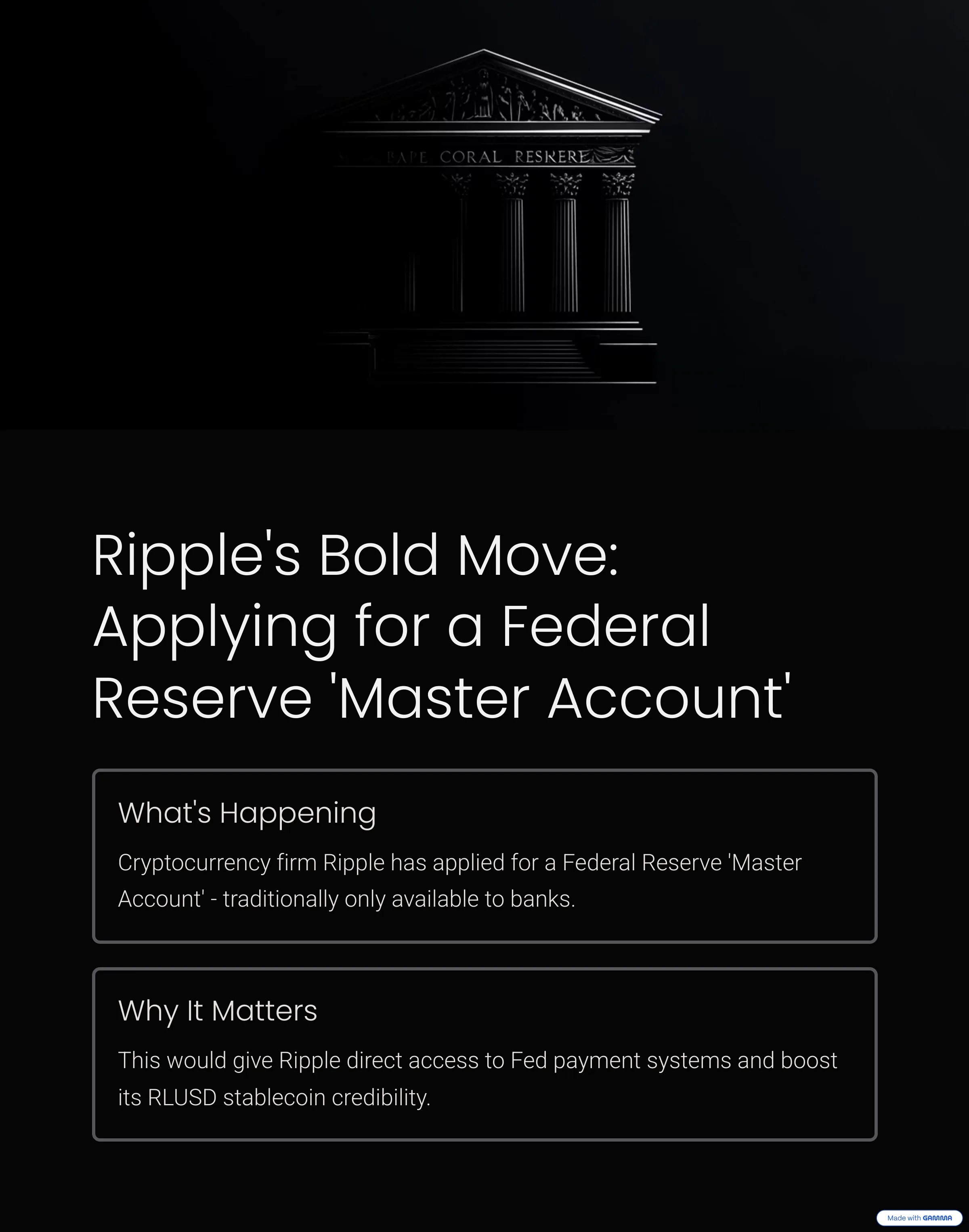 This report aims to analyze the background and significance of Ripple’s master account application and to examine related systems and policy trends. First, it will outline the concept and historical context of the master account, as well as the Fed’s policy background. Next, it will explore Ripple’s business structure and recent activities (e.g., its XRP-based international payments network, the launch of its RLUSD stablecoin) and analyze the technical and business reasons why Ripple needs a master account.